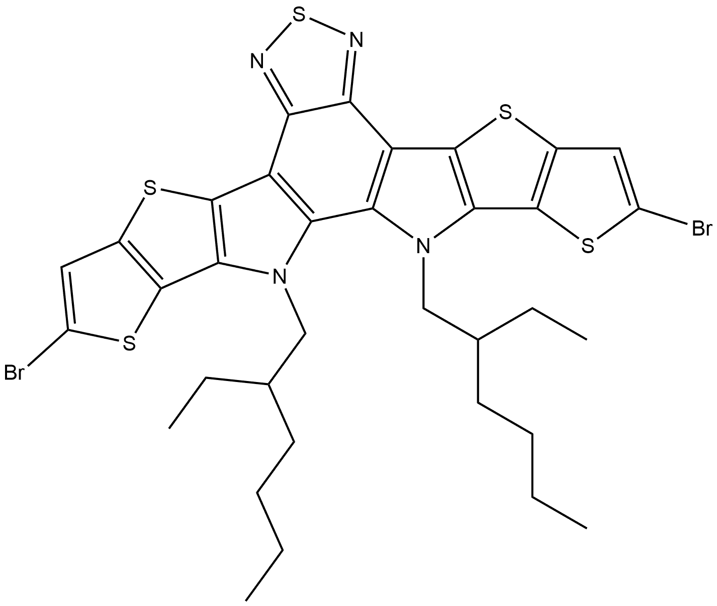 中文名稱:2,10-二溴-12,13-雙(2-乙基己基)-12,13-二氫-[1,2,5]噻二唑[3,4-e]噻吩并[2',3':4',5']噻吩并[3',3',4,5]吡咯并[3,2-g]噻吩并[2],3':4,5]噻吩并3,2-b]吲哚